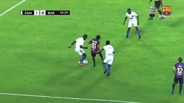 El brasileño se ganó los aplausos este sábado por esta maniobra en un partido entre las leyendas del Barcelona y el Zambia Football Legends.