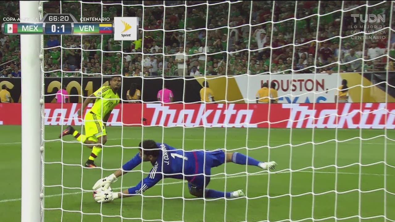 El delantero venezolano entró solo al área y sacó un zurdazo que terminó en las manos del arquero José de Jesús Corona.