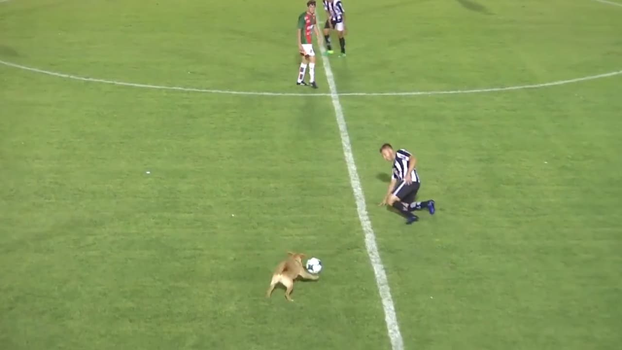 Ver para creer: un perro entre al campo y le comete una ‘falta’ a un futbolista en pleno partido