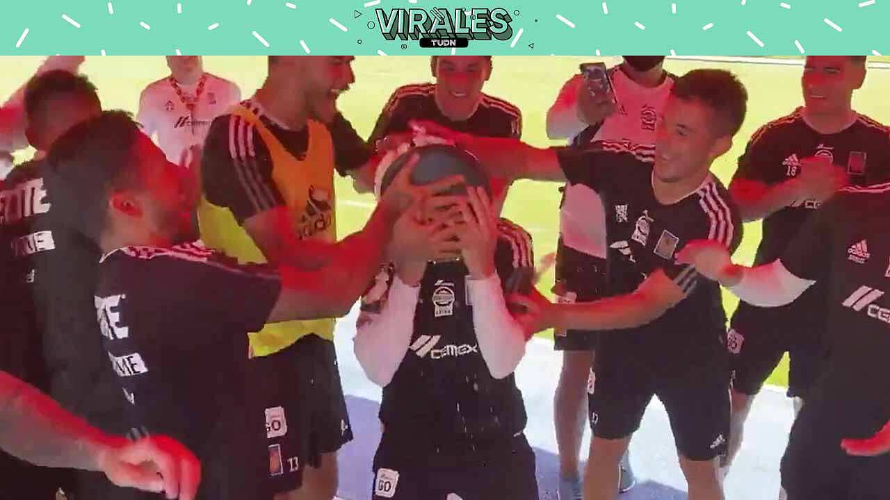 Vigón festeja su cumpleaños con pastelazo en Tigres
