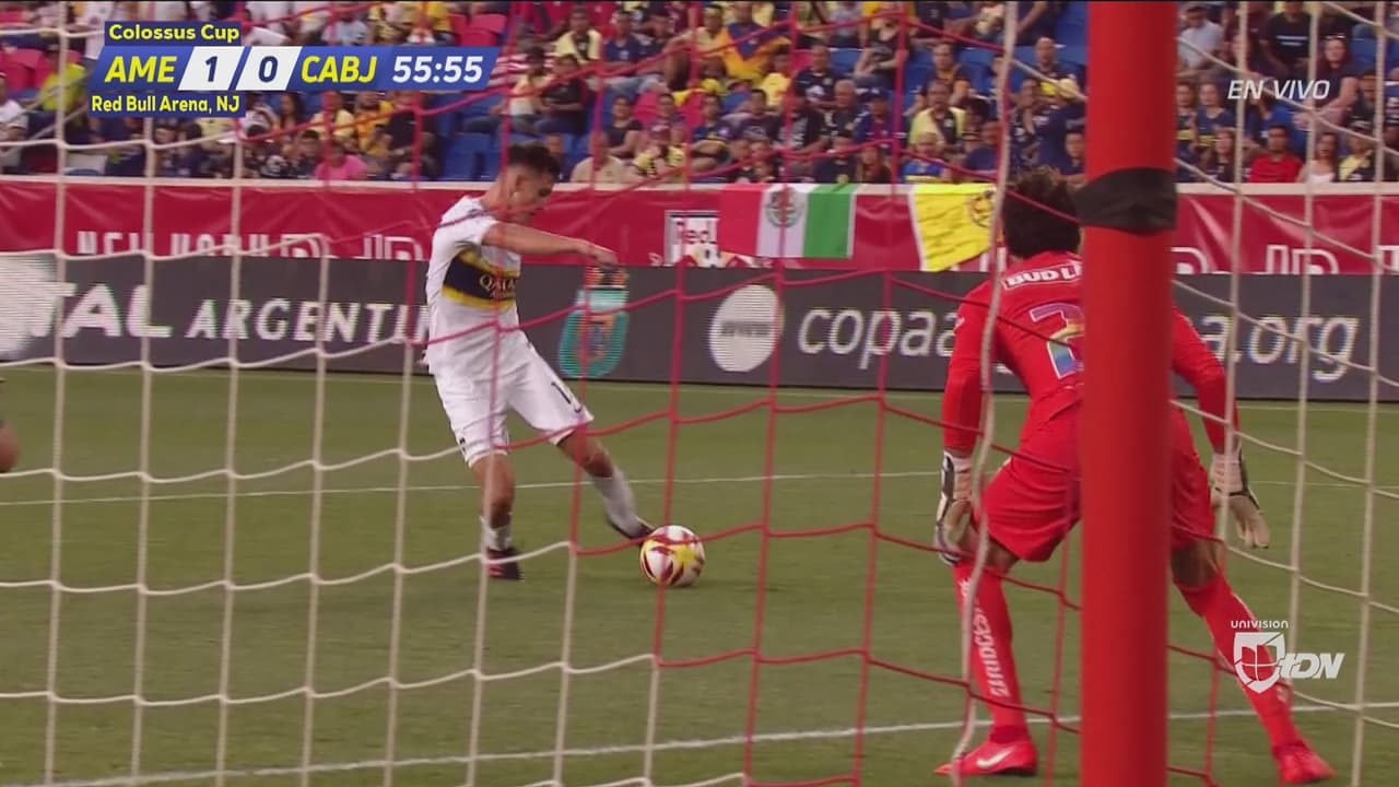 Primero Ramón Ábila remató desviado un centro desde la derecha y luego Nicolás dejó ir un disparo de zurda tras un error en la salida americanista.