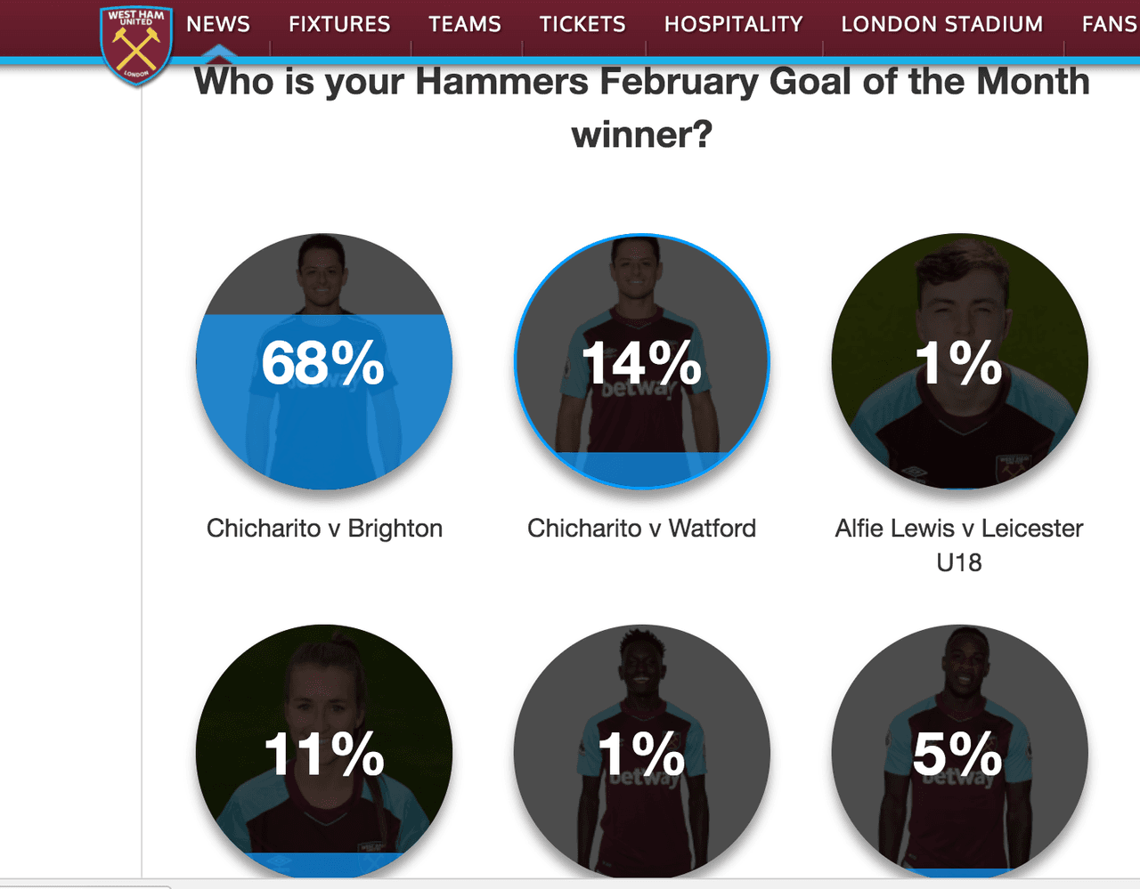 El West Ham, club en el que milita el delantero mexicano Javier Hernández, sometió a votación el mejor gol en febrero en todas sus categorías, incluidas fútbol femenil y divisiones inferiores, pero la anotación que hizo ‘Chicharito’ frente al Brighton arrasó en el gusto de los seguidores de los ‘Hammers’.