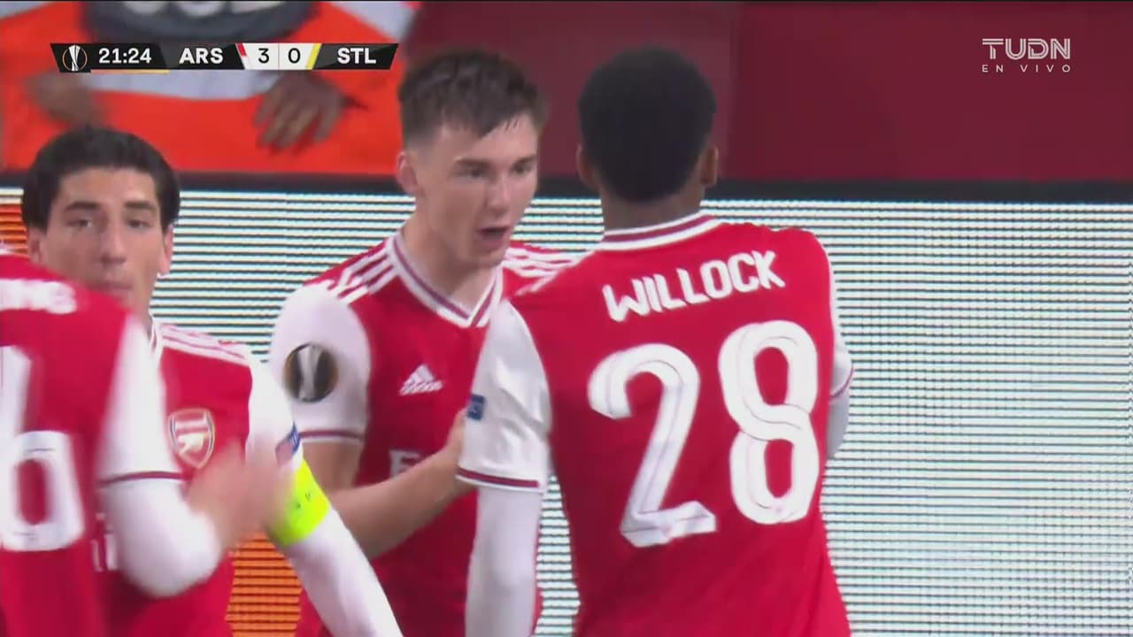 Ya es goleada… Joe Willock marca sólo el tercero para Arsenal.