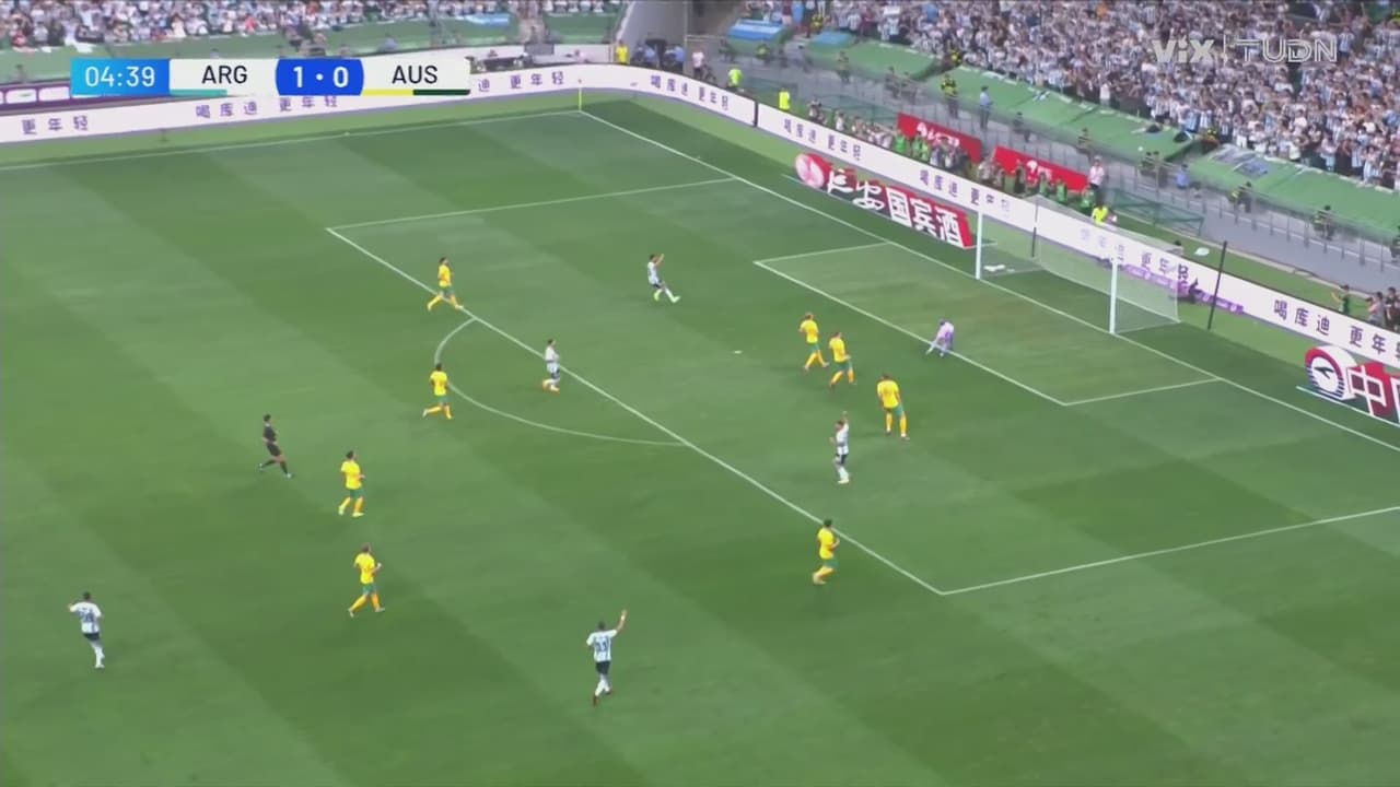 El volante albiceleste entró solo a pase de Messi y disparó con potencia encima del arco de Australia.