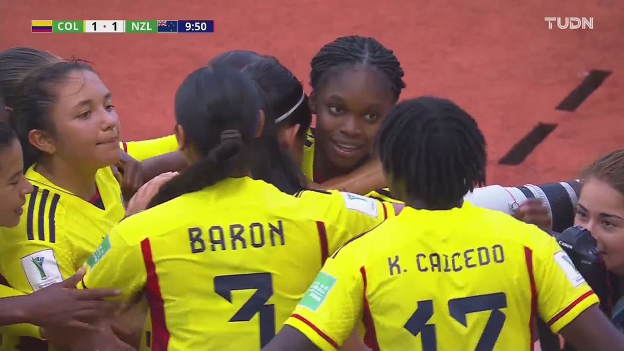 Linda Caicedo ve salida a la portera Murphy Sheaff y con remate colocado cerca al palo iguala al 10’.
