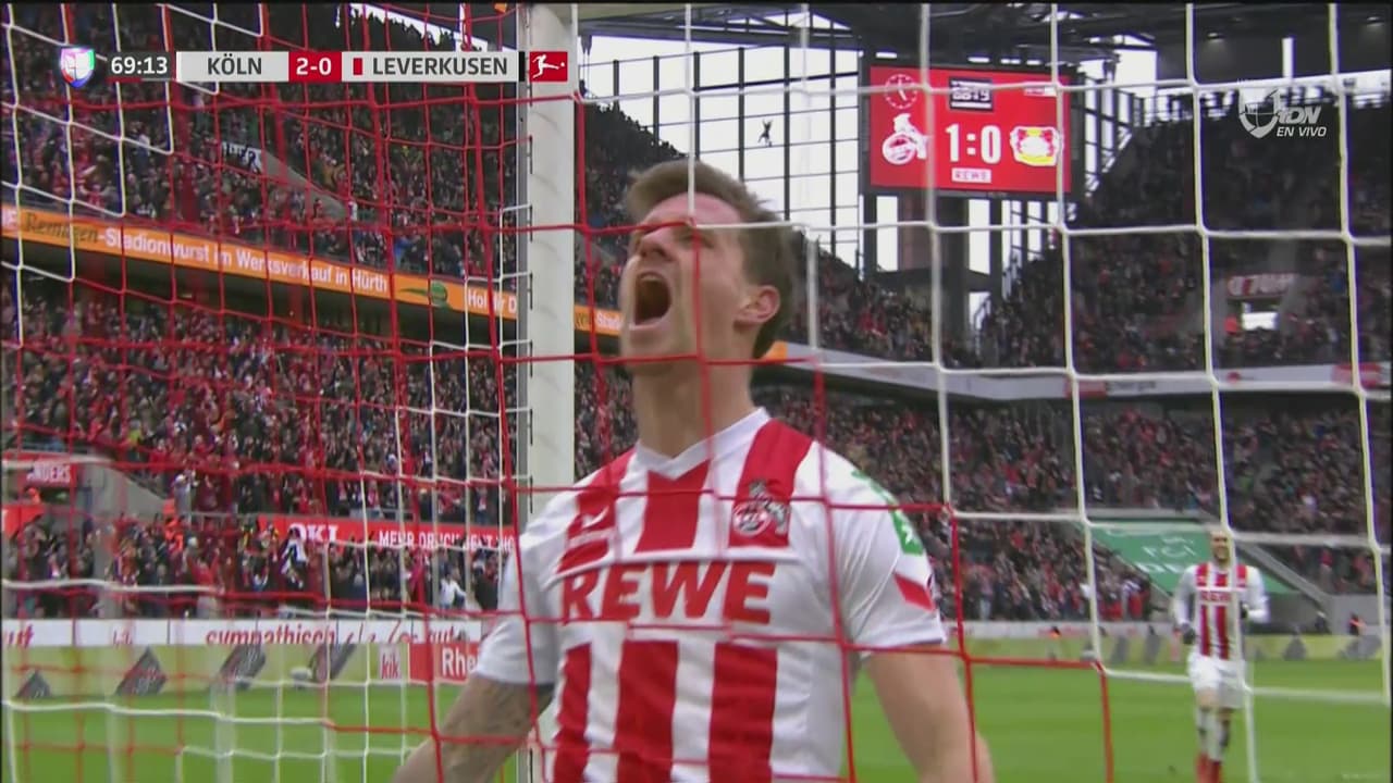 El delantero de las cabras anotó el segundo tanto de su equipo ante el Leverkusen.