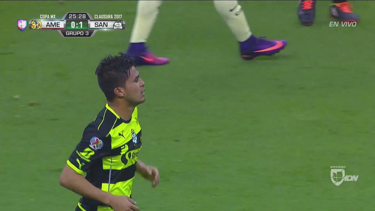 Con un educado toque a balón parado, el mediocampista lagunero abrió el duelo entre América y Santos.