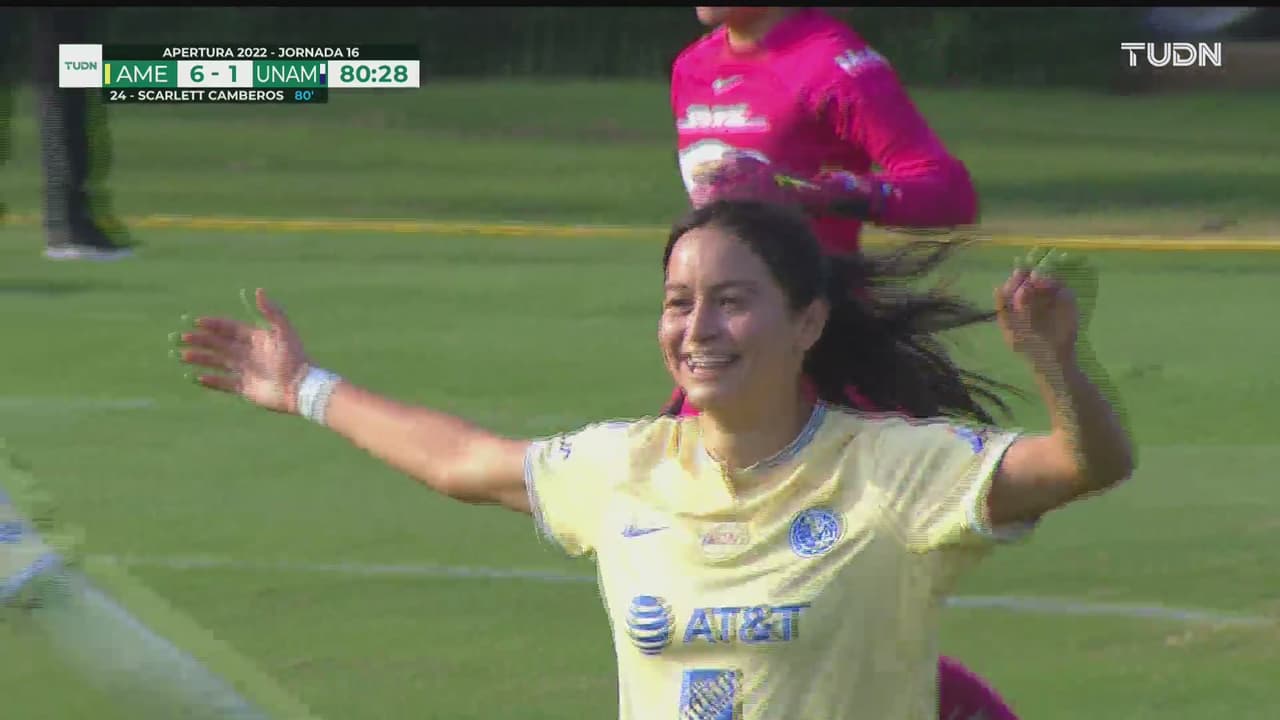 Samantha no puede controlar la pelota y Scarlett se la roba para fusilar a Melany Villeda.