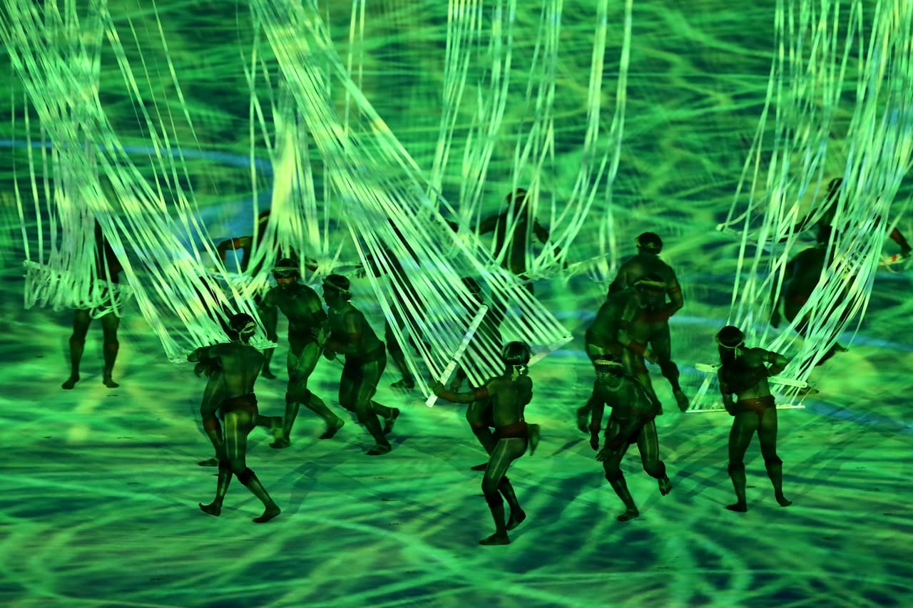 Bailarines en plena actuación durante el espectáculo inaugural de Río 2016.