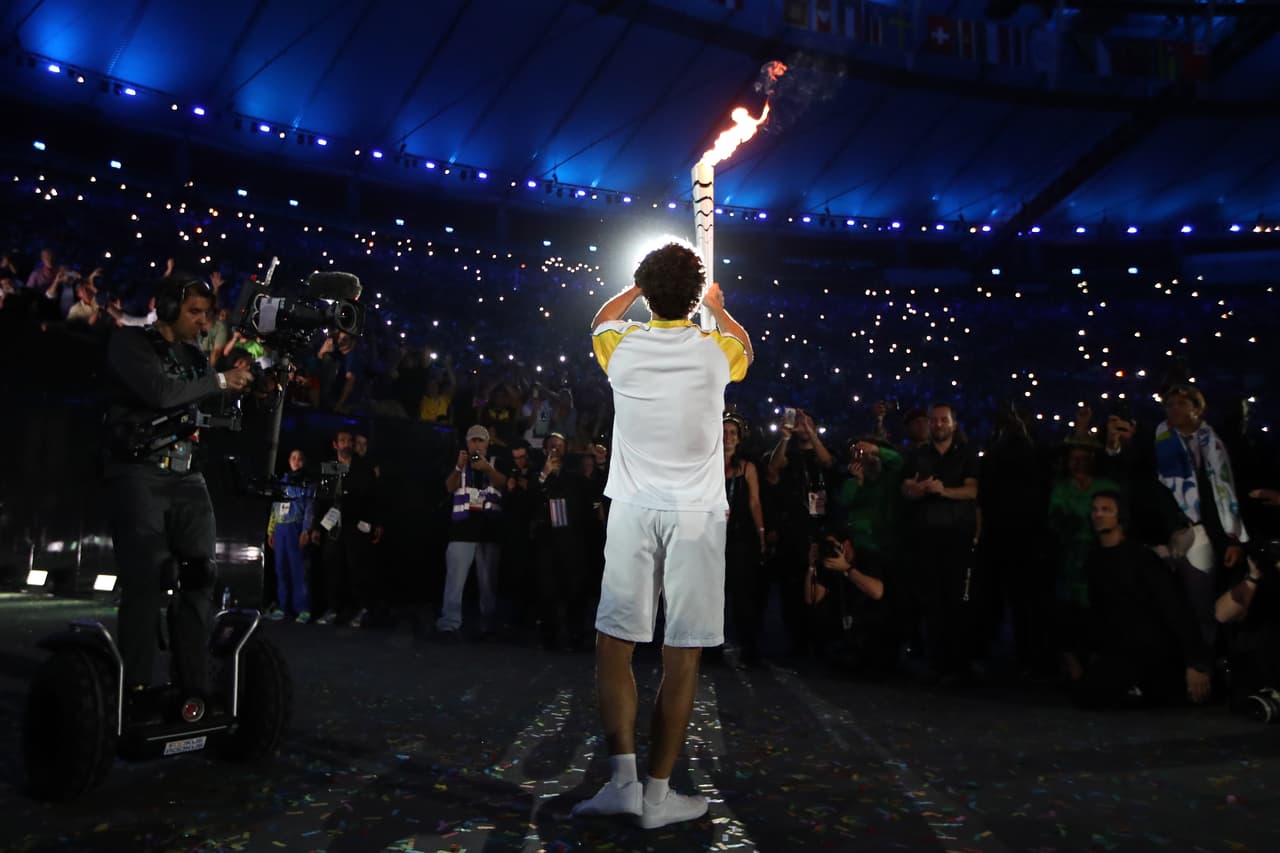El legendario tenista brasileño Gustavo Kurten fue uno de los responsables de llevar la antorcha Olímpica al centro del estadio Maracaná.