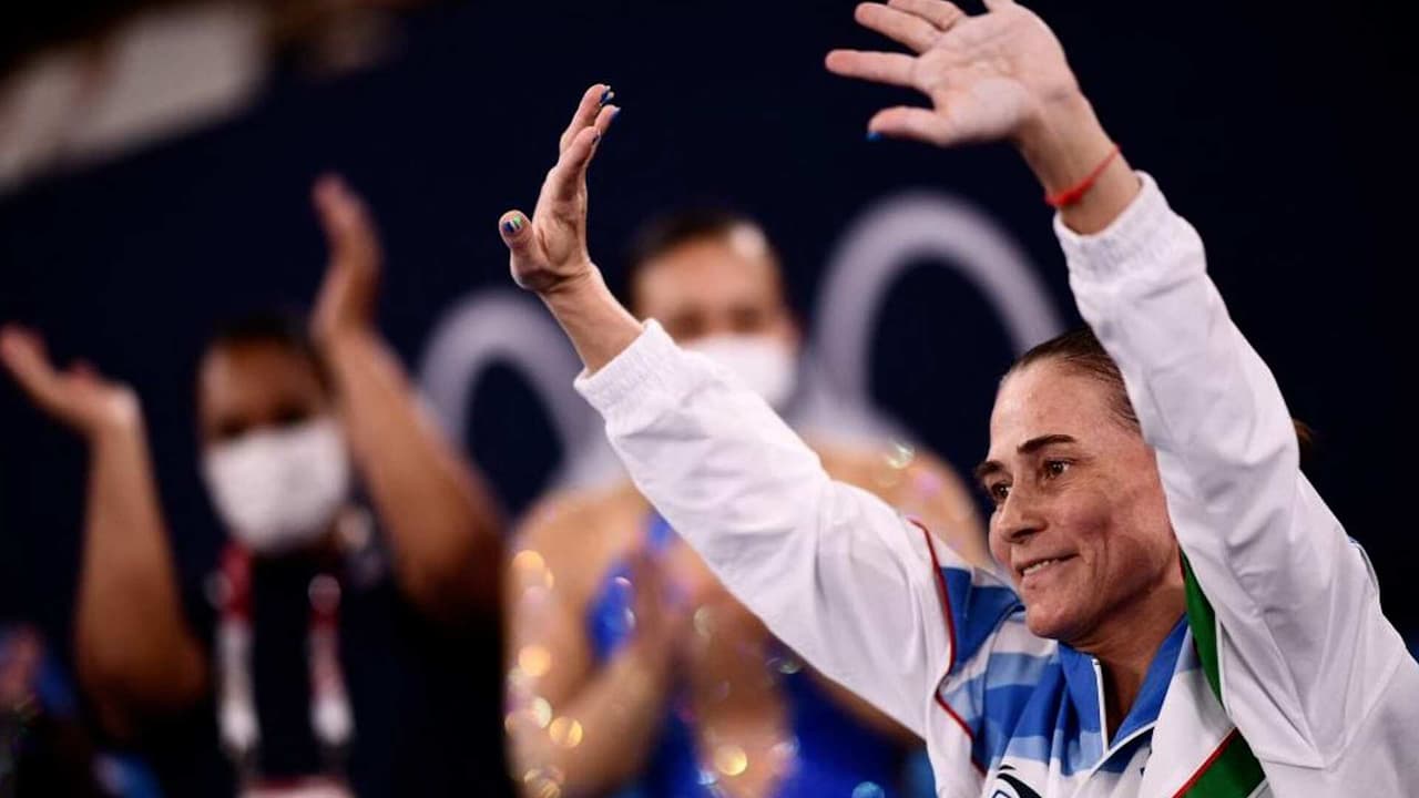 La gimnasta de 46 años se despidió entre aplausos y ovaciones de parte de jueces, entrenadores y colegas tras competir en salto.