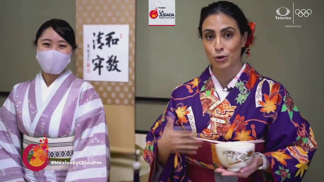 Valeria Marín se vistió con el atuendo nipón y aprendió a preparar una deliciosa bebida.