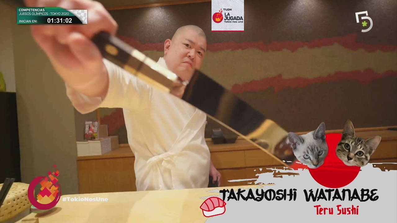 El chef Watanabe encontró la mezcla perfecta entre la calidad de su platillo y el espectáculo.