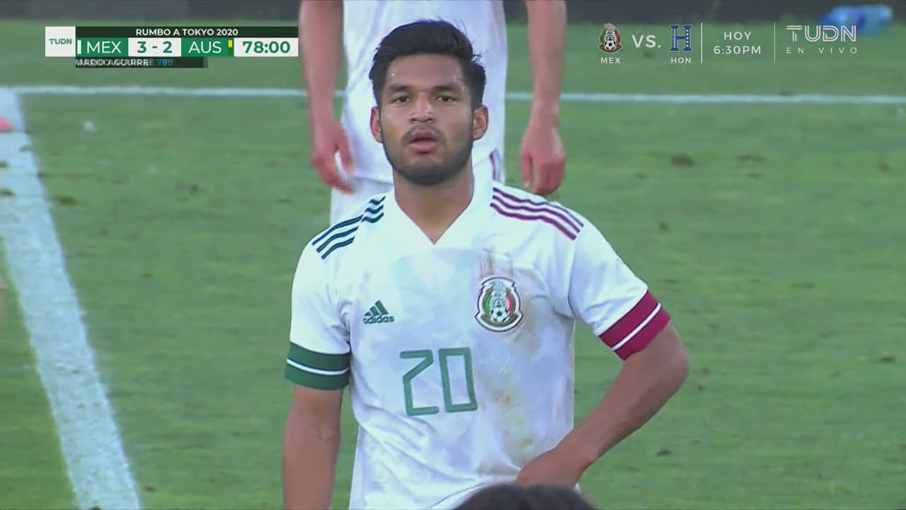 Fue al minuto 32 que Australia se puso al frente en un gol de penal bien cobrado por Daniel Arzani, luego de una falta en el área de José Juan Macías, lo que puso de nuevo en duda su nivel para acabar en la lista definitiva del conjunto mexicano.