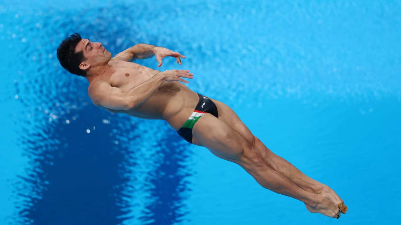 Rommel Pacheco en la final de trampolín de 3m