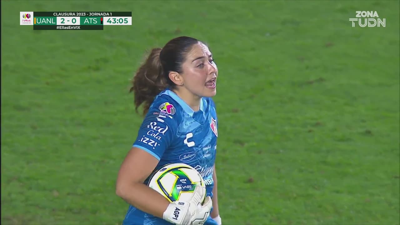 Tigres no deja de ofender a Atlas y de nuevo pusieron a prueba a la guardameta con el tiro cercano al 43’.