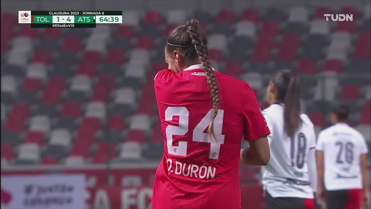 Balonazo largo del Toluca al área, la portera se amarró y la ‘24’ remató de cabeza para perforar al 65’.