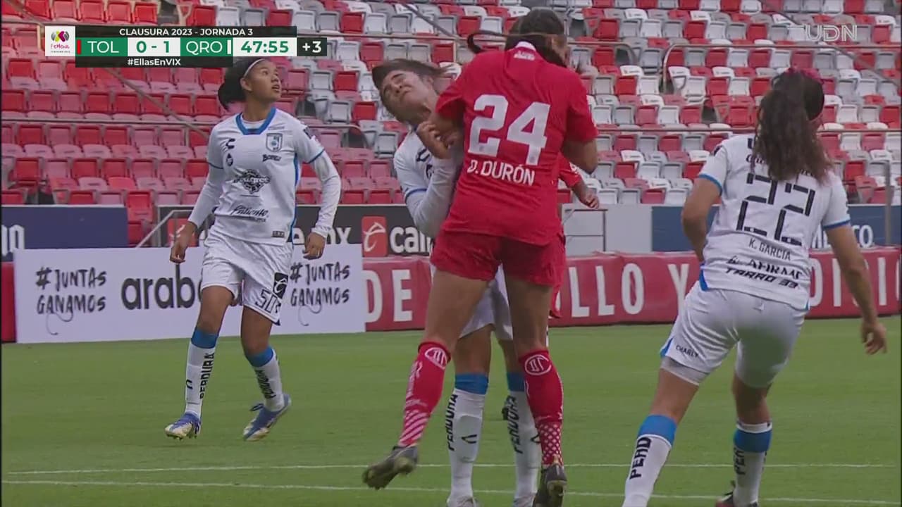 En la disputa por el balón, Destinney le pega sin querer en la nariz a la capitana Jazmín, quien fue atendida.