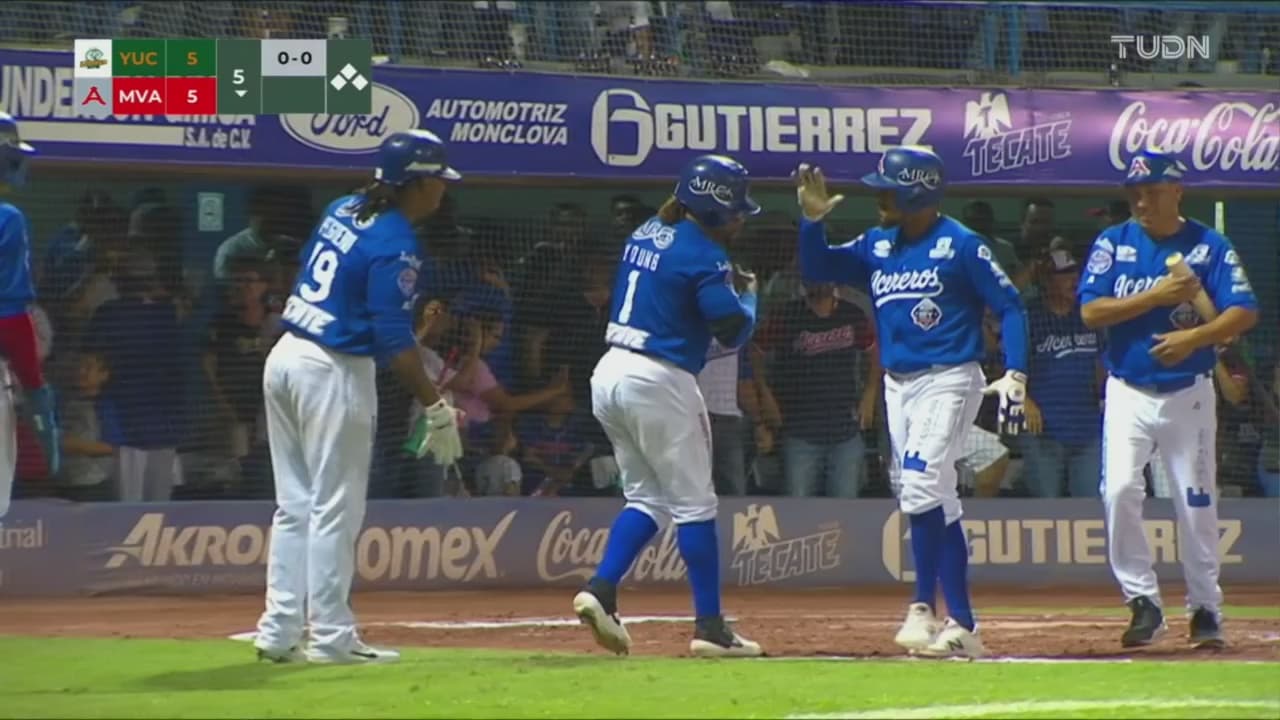 El festín de batazos continuó en el cuarto rollo para poner a Yucatán adelante 5-2, apoyados por bambinazo de Sebastián Valle, teniendo en los senderos a Art Charles y Leo Heras. Aybar regresó en el juego a los locales, al encontrar a bordo a Erick Young Jr. y a Perio, para pegar batazo de cuatro estaciones que niveló la pizarra 5-5.