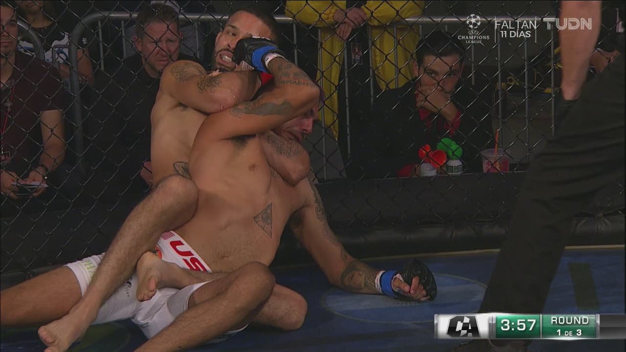Pero en la electrizante primera pelea, Dan Argueta demostró su velocidad para zafarse de las tenazas de su oponente y luego, lo llevó a la lona para aplicar la estrategia y tomar su tercer sumisión para llevarse la victoria en apenas el primer asalto.
