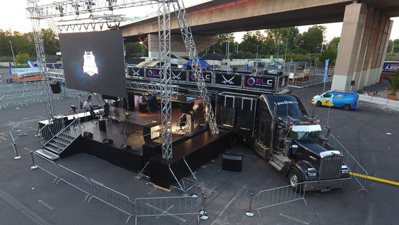 El primer camión-transformer-arena totalmente equipado y listo para montar en 2 horas un evento de eSports.