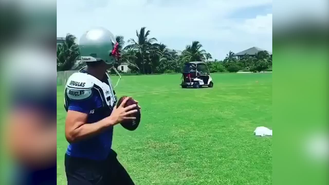 Durante sus vacaciones, el mariscal de campo de los New England Patriots demostró toda su calidad y precisión en este pase. El que sabe, sabe.