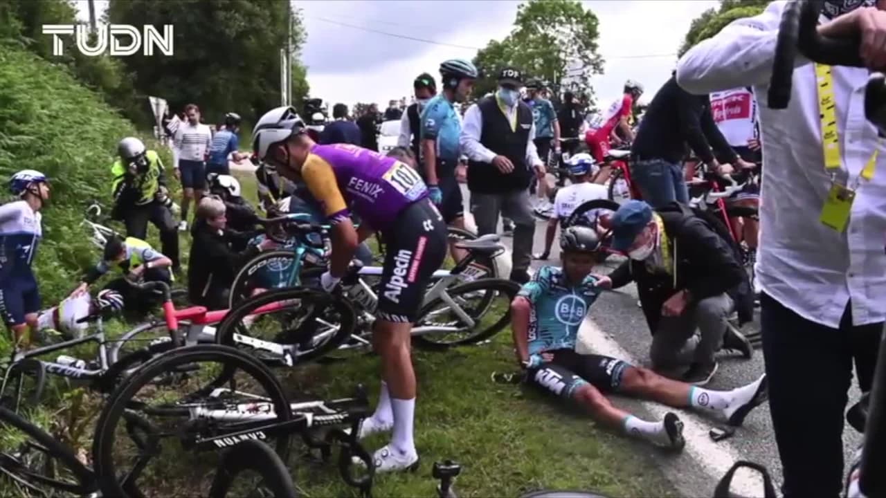 La mujer que no ha sido identificada mostraba un cartel a la cámara muy cerca de la meta de Landerneau, cuando el alemán Toni Martin la impactó y de ahí se generalizó una caída de ciclistas que sumó hasta 20 competidores que no pudieron escapar al golpazo.