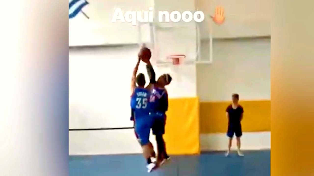 Carlos Vela hizo un tremendo tapón a lo Ginóbili en un duelo de baloncesto
