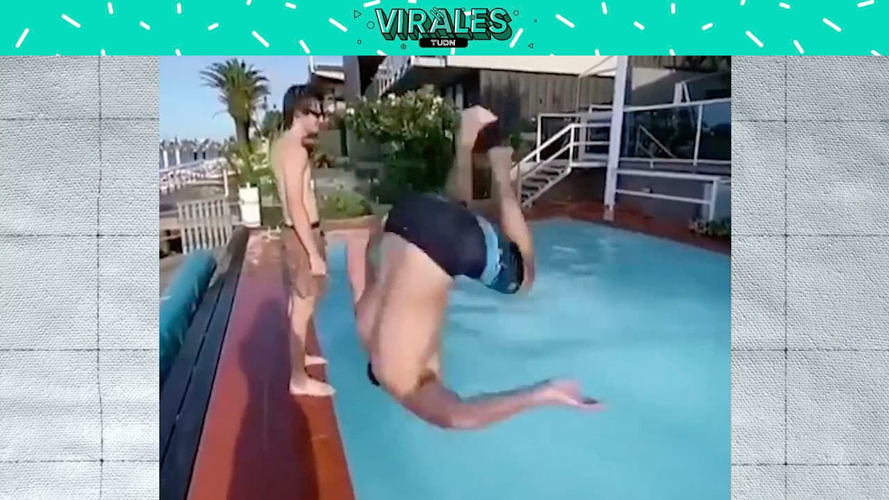 Estuvo a milímetros de impactar su cabeza con el borde de la piscina.