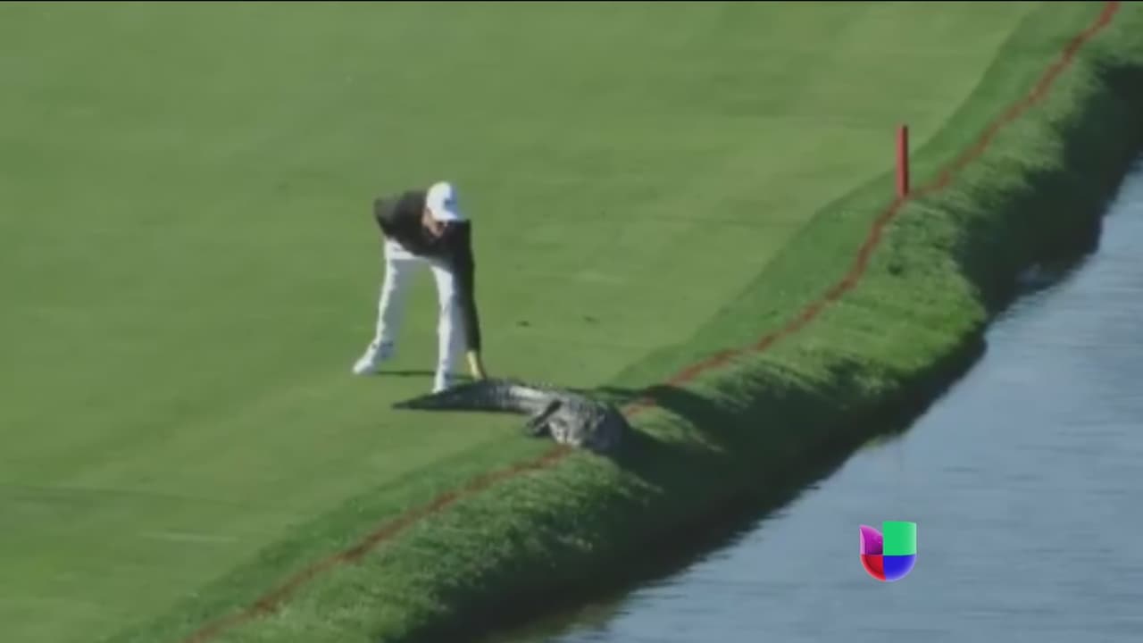 El golfista estadounidense no tuvo temor alguno para alejar, de una manera poco común, un cocodrilo que se encontraba muy relajado en el campo de golf.