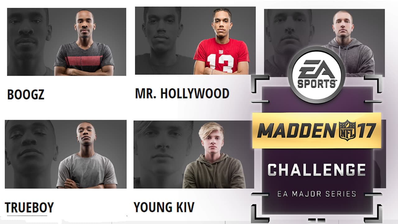 Los 16 participantes fueron organizados en 4 grupos de 4 miembros cada uno, estos son los aspirantes a campeón de Madden Challenge 2017: