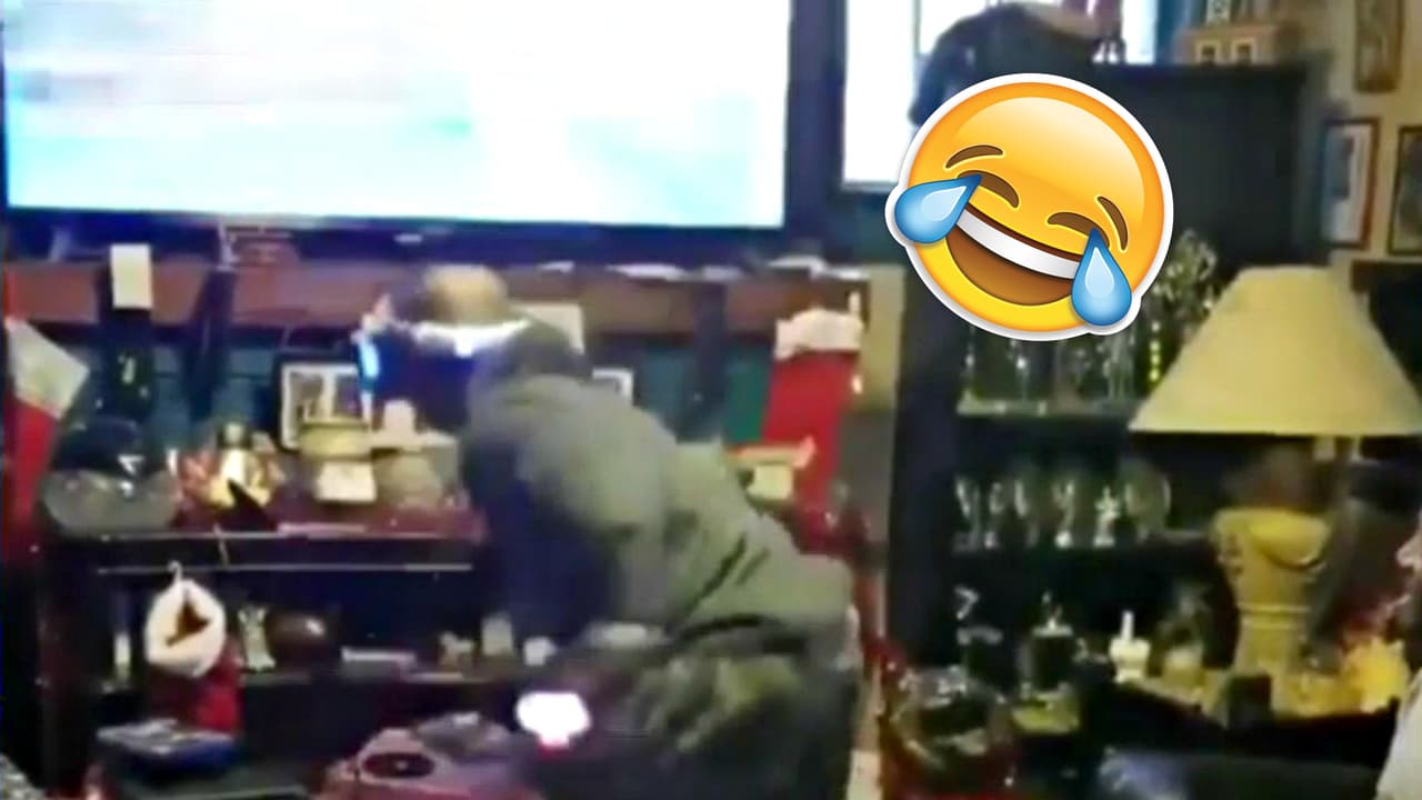 Este hombre se tomó muy en serio la pelea. Luego de lanzar varios derechazos, en un juego de realidad virtual, terminó acercándose a la televisión y por poco le lanza uno de sus puños.