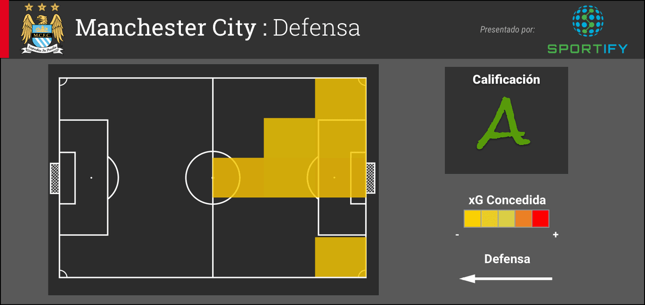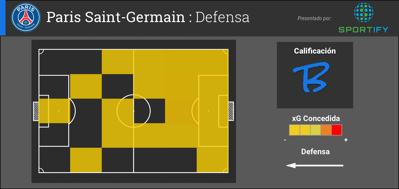 En la defensa, el City perdió 69 duelos - su peor rendimiento de la temporada. Para el PSG, Adrien Rabiot gano 19 duelos, la mayor cantidad para un jugador esta temporada. En las visualizaciones, se ve que el PSG concedió expectativa de gol en varias zonas de la cancha, mientras que el Manchester City limitó las zonas en donde le concedió oportunidades al visitante.