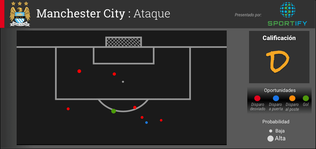 Los ciudadanos hicieron pocos disparos a gol. De sus ocho intentos, uno fue el gol ganador, otro fue atajado por Kevin Trapp y los demás fueros desviados de la portería. Hasta el intento que hizo Sergio Agüero desde el punto de penalti fue mal tomado por el argentino. En su esfuerzo por redimirse, Agüero hizo cuatro esfuerzos desvidos. El PSG lanzó varios ataques, pero ninguno resultó en gol para los parisinos. Cinco de sus seis disparos fueron a puerta de gol y uno fue desviado.