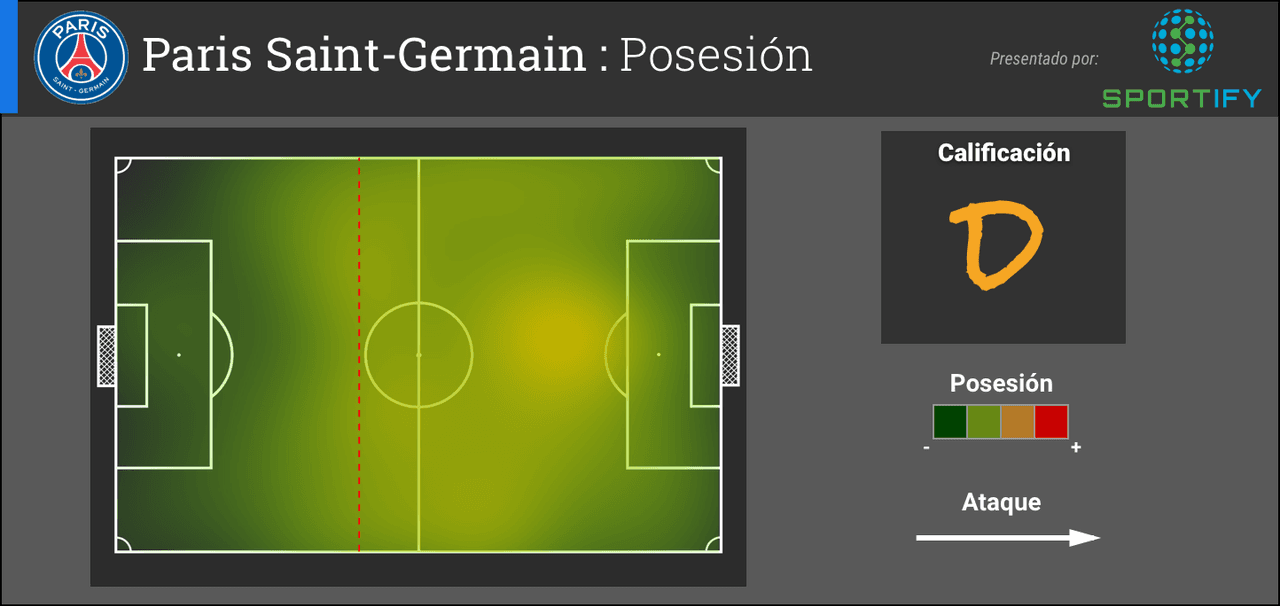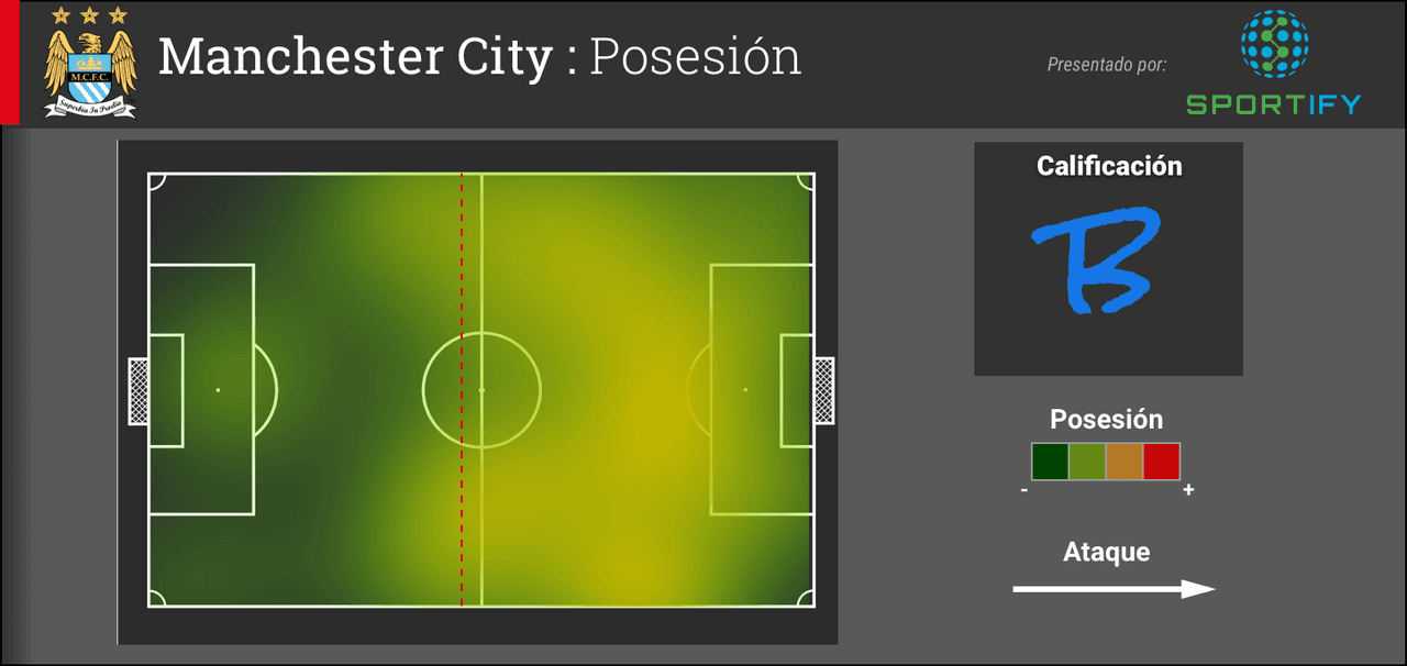 Las visualizaciones de la posesión revelan un partido fluido entre los dos equipos. Los dos demostraron tendencias similares, aunque los inicios de la posesión del Manchester City fueron más cerca al centro de la cancha como indicado por la línea roja punteada.