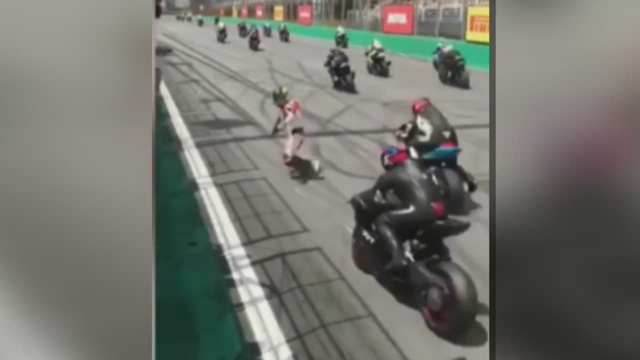 ¡De milagro! Motociclista profesional se salvó de ser atropellado al inicio de una carrera
