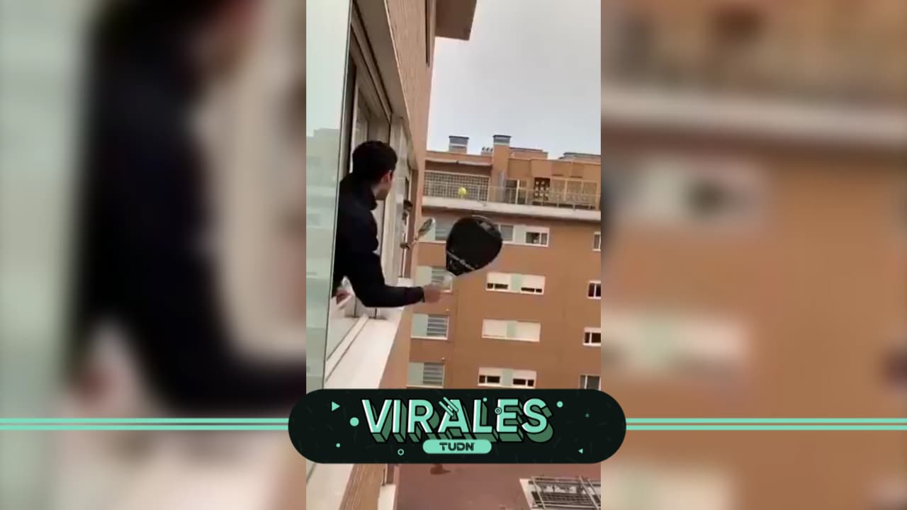 A falta de deporte en televisión, este par de hombres se divierten con un par de raquetas y una pelota.