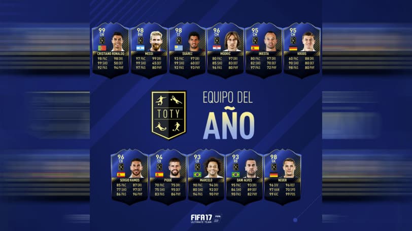 EA Sports dio a conocer su Equipo del Año (TOTY) que se basa en los once jugadores que fueron reconocidos como los mejores en los premios The Best de la FIFA. Jugadores como Cristiano Ronaldo, Lionel Messi, Luis Suárez y Manuel Neuer están en el TOTY.