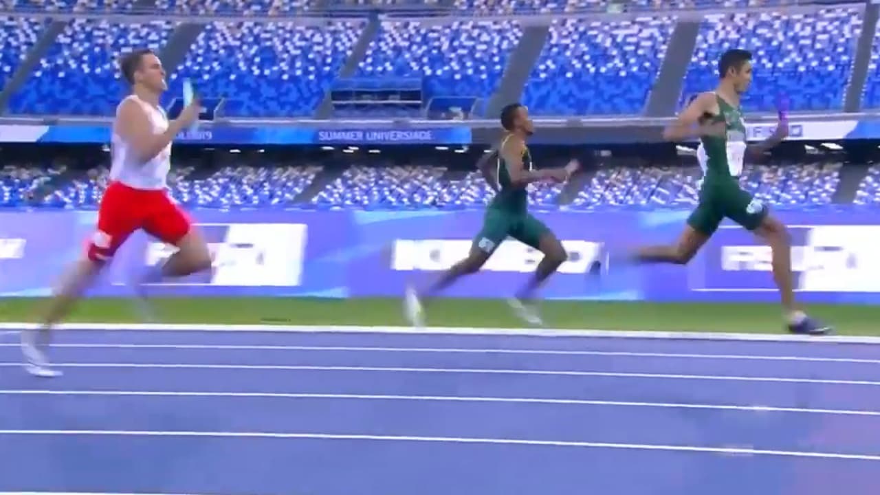 Valente Mendoza cerró, literalmente, con broche de oro para darle la medalla de Oro a México y récord nacional en el relevo 4x400 de la Universiada Mundial Nápoles 2019.