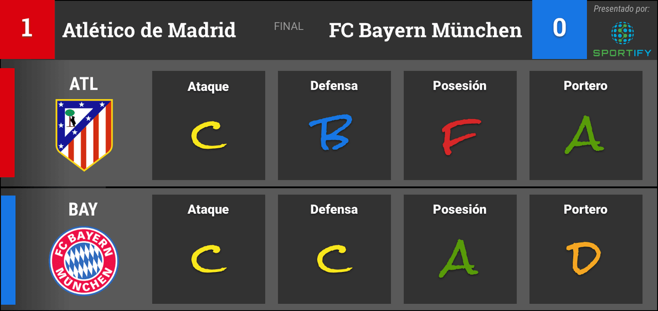 Boleta de calificaciones del partido entre el Atlético de Madrid y el Bayern Múnich