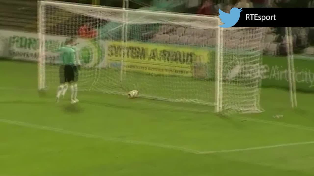 Conan Byrne del St. Patrick's de la primera división irlandesa vio al portero salido de su arco y no dudó en pegarle así a la pelota.
