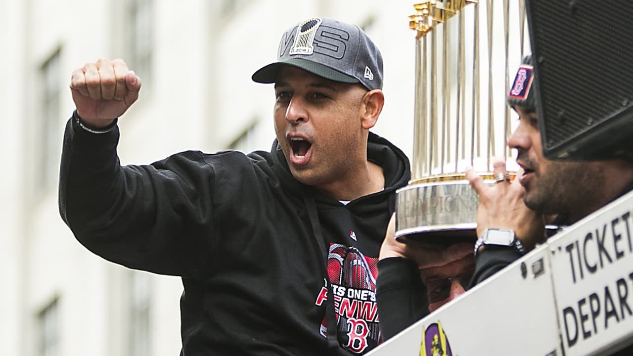 Alex Cora se encontraba saludando a los fans que se dieron cita en las calles para celebrar el título de Serie Mundial ante los Dodgers, cuando un fan aventó una cerveza que casi le pega en la cabeza.
