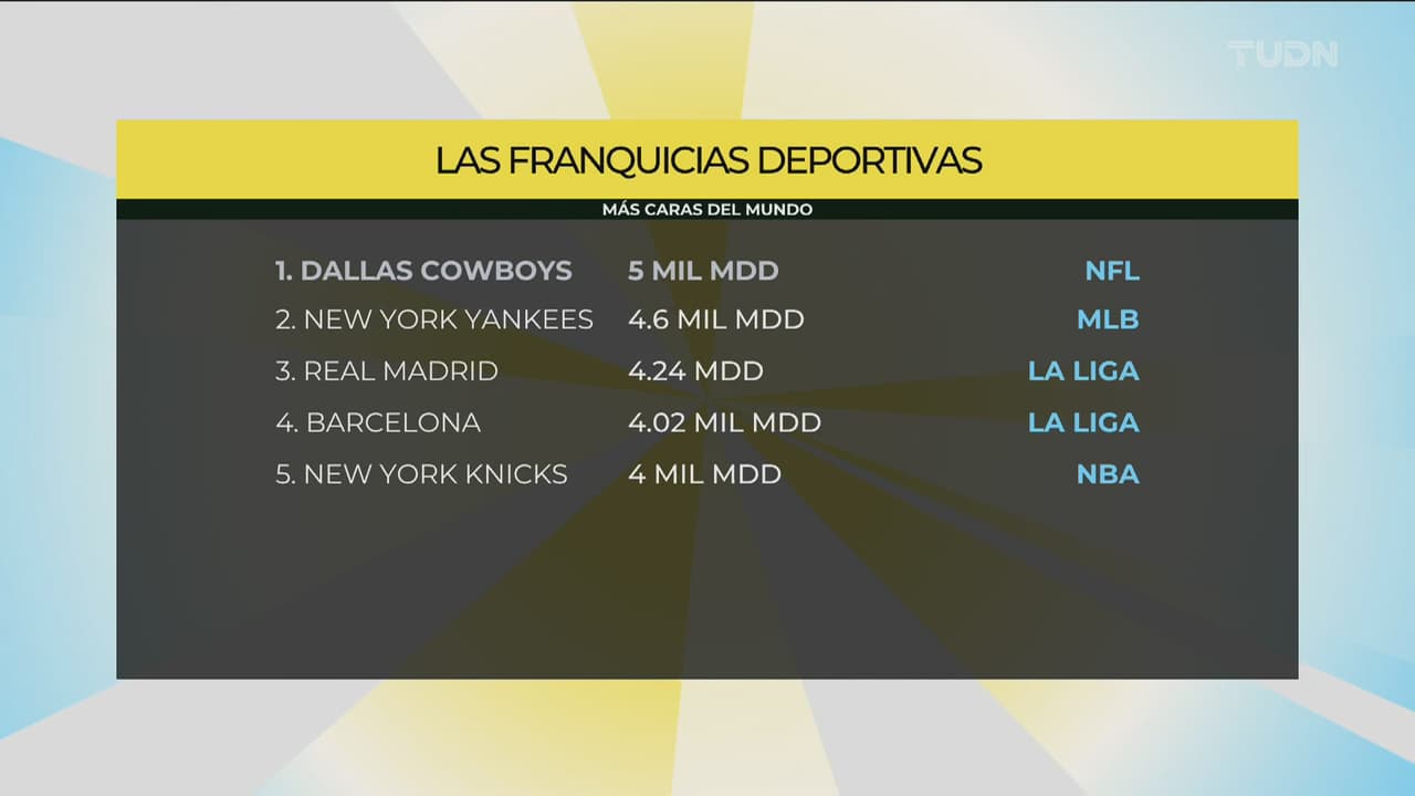 Real Madrid y Barcelona son los equipos de fútbol con mayor valor a nivel mundial, según un informe de la revista Forbes. Un equipo de la NFL, otro de la NBA y uno más de la MLB completan el listado.