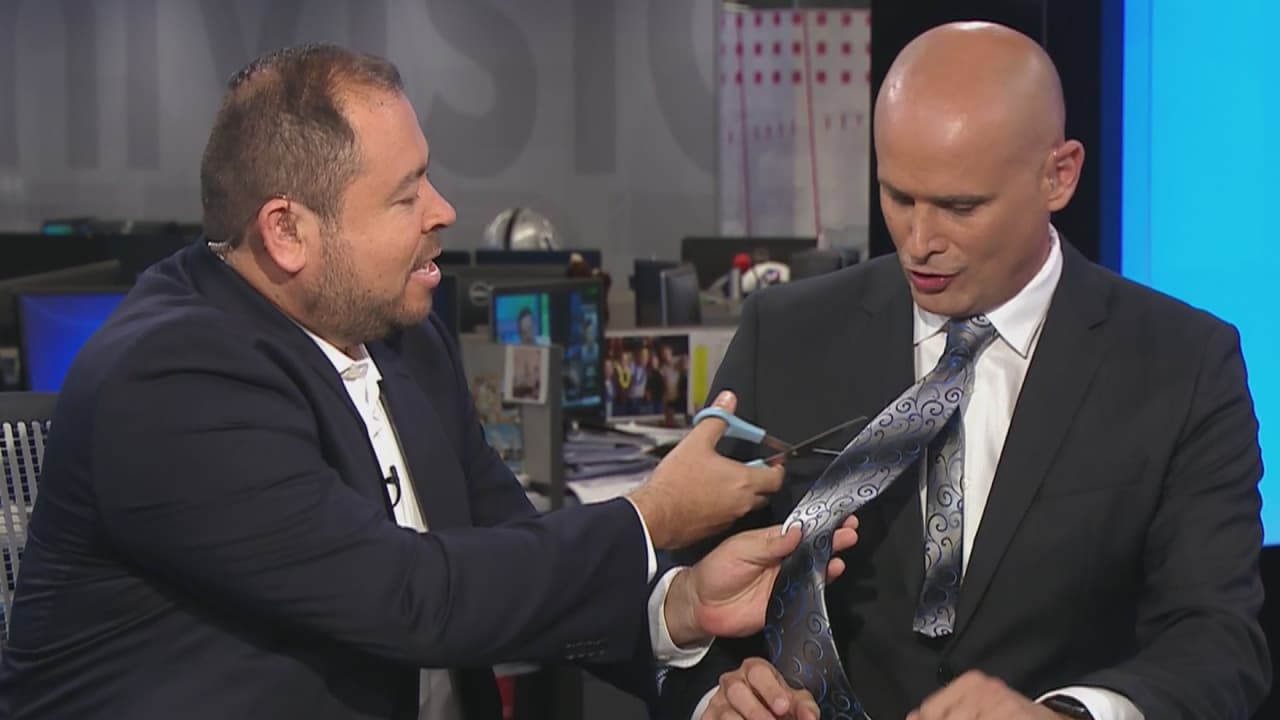 El programa de los ‘Baquetones’ no admite formalidades como las que intentó lucir Iván Kasanzew. La multa que se le impuso fue el corte de corbata en vivo. Aquí el momento.