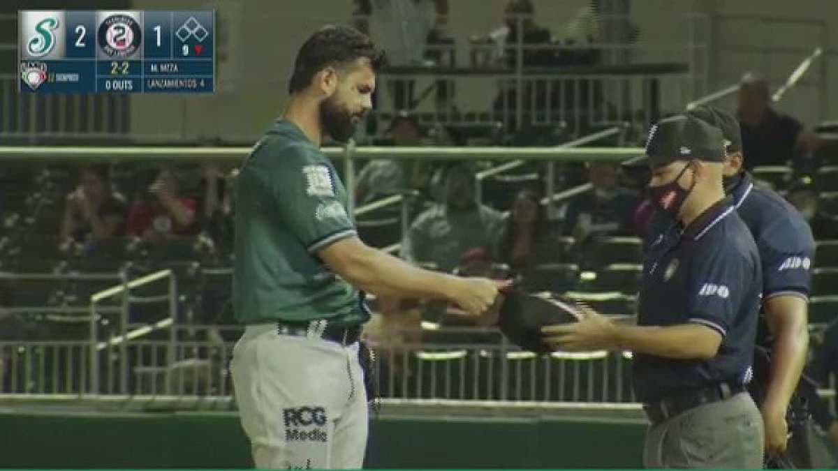 El ampáyer de la Liga Mexicana de Béisbol encontró una anomalía en la gorra del pitcher de la novena de Saltillo y no dudó en echarlo.