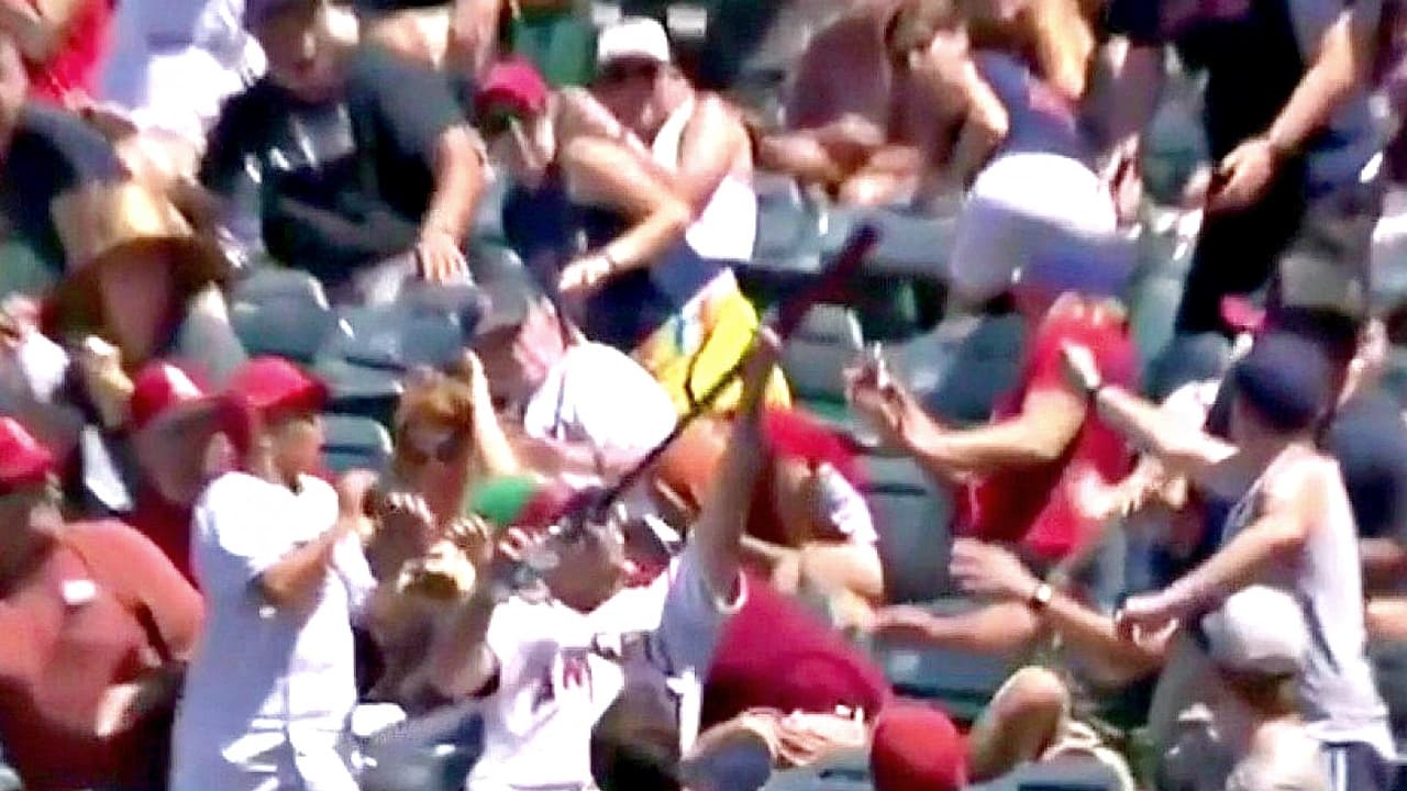 En el duelo entre Los Angeles y los Red Sox un fanático salvó el día, y a varios de los que estaban con él en la grada, al atrapar un bate. Lo hizo con una mano y sin derramar su bebida.