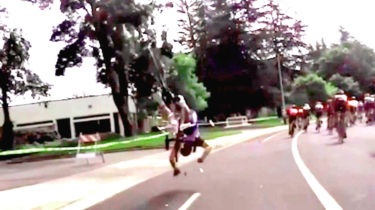 En una carrera disputada en Sacramento, California, se dio el colmo de la mala suerte para uno de los ciclistas. Un drone se derrumbó y justo le cayó en la rueda de atrás. Aquí vemos cómo terminó…