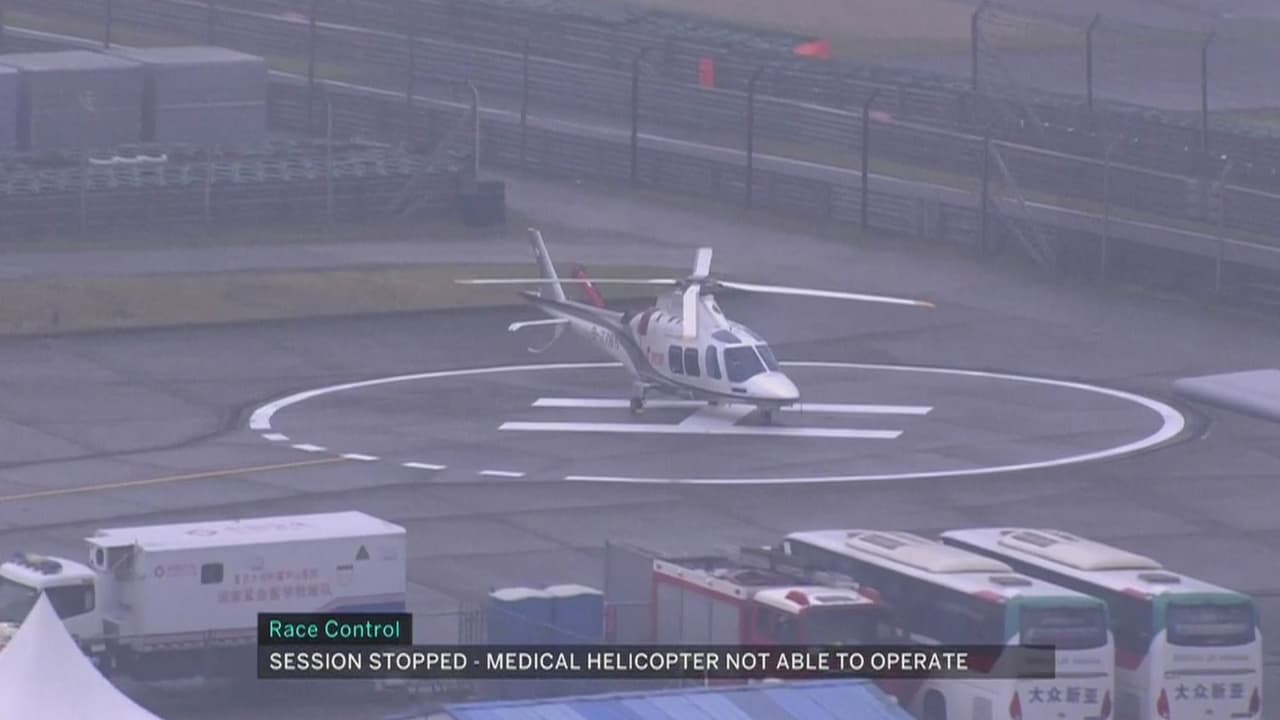 En el Gran Premio de Shangái no se realizó el entrenamiento libre programado porque una espesa neblina hizo impracticable la navegación de la aeronave destinada a socorrer a los pilotos.