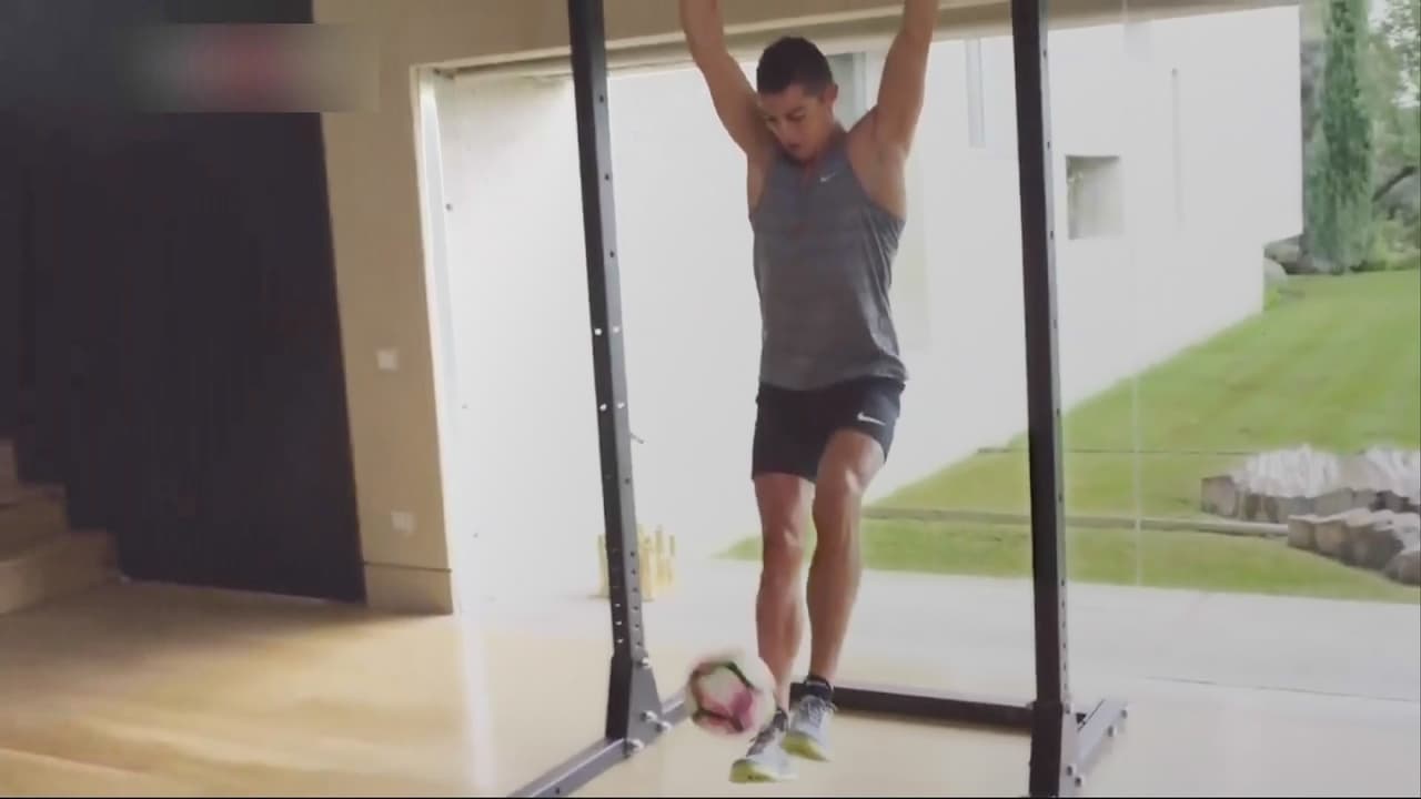 Hay jugadores a los que les sobra el talento. Y CR7 es uno de ellos. En este video se lo ve haciendo tres cosas a la vez: ejercicio colgado en una barra, dominadas con la pelota y una canasta con el pie.