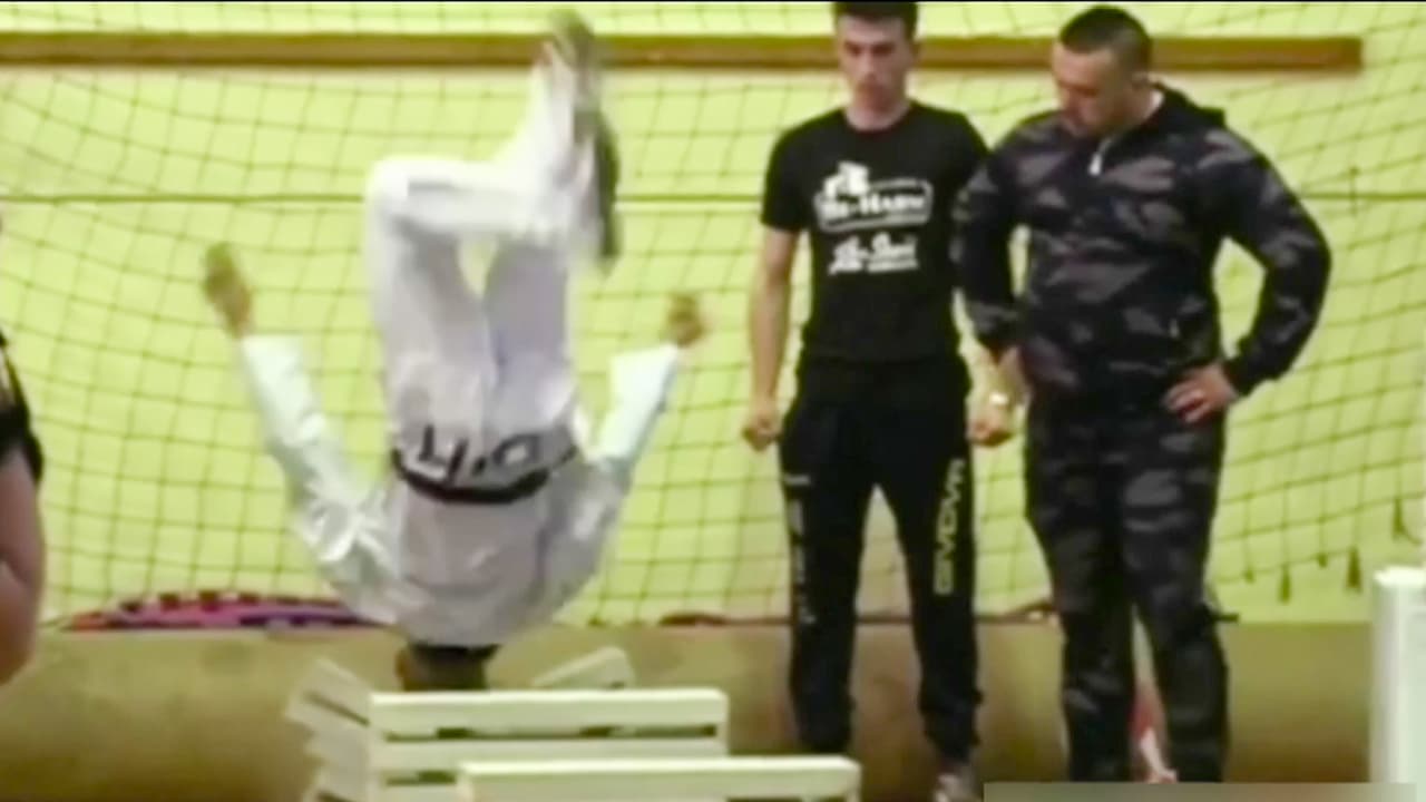 El joven campeón de taekwondo, con solo 16 años batió un auténtico récord al romper más de 100 bloques de cemento con la cabeza en menos de un minuto.